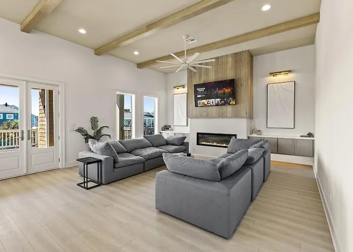Die großzügigen Schlafbereiche im 500 Ft To Beach Upscale Beach Home Golf Cart With Fire Pit For 14 sind stilvoll eingerichtet und laden zu einem entspannten Aufenthalt ein. Jedes Zimmer bietet moderne Annehmlichkeiten sowie einen einladenden Blick auf die Umgebung, wodurch ein Gefühl von Behaglichkeit entsteht. Die offene Raumgestaltung sorgt für ein harmonisches Miteinander und bietet Platz für unvergessliche Momente mit Freunden und Familie.